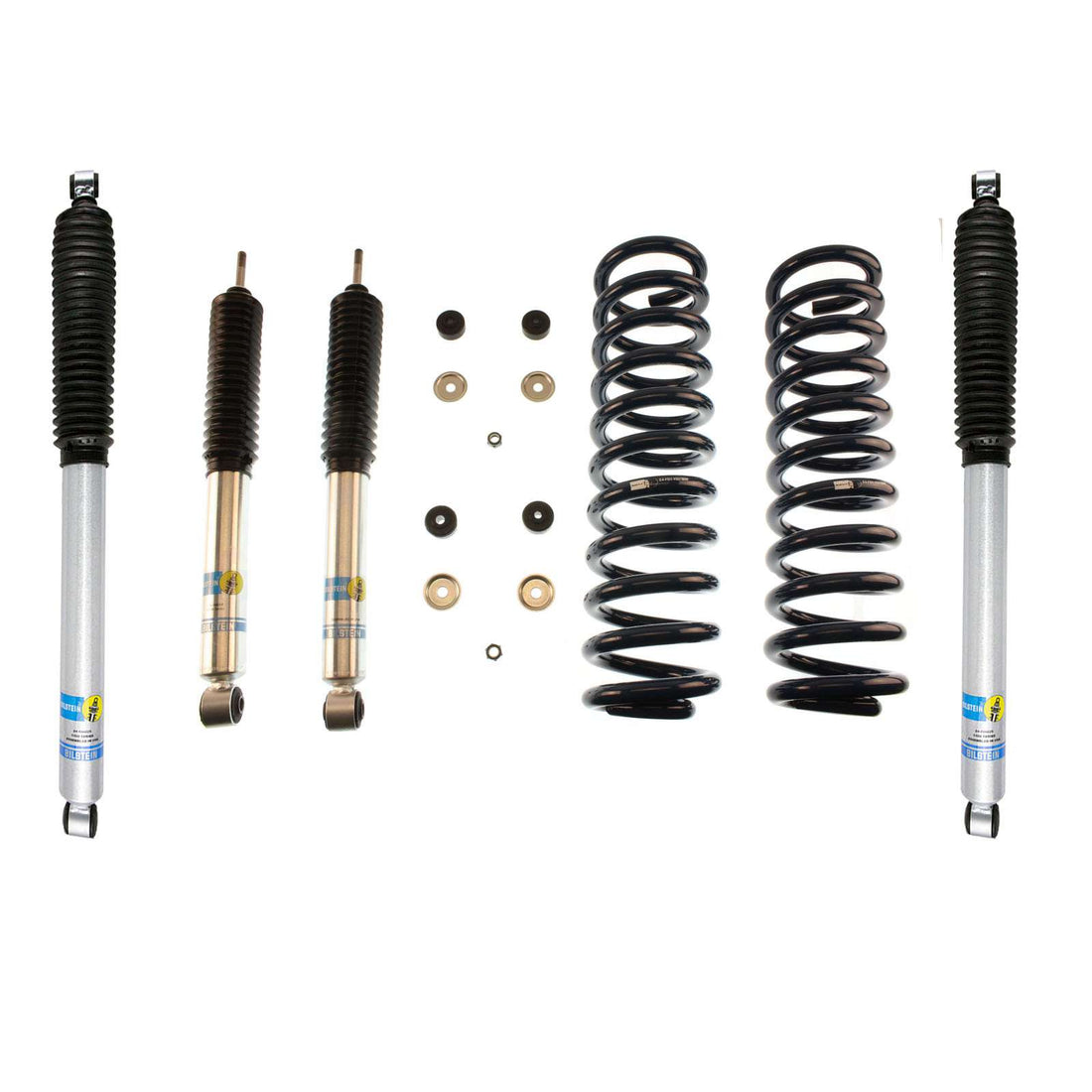 Bilstein B8 5112 suspension kit is a high performance leveling kit which provides more ground clearance, allows for larger tires, and increases wheel travel. The Bilstein B8 5112 suspension kit is for front applications and consists of two B8 5100 shock absorbers combined with two matched coil springs. This simple yet effective kit will bolt into the factory locations with no modifications. The Bilstein B8 5112 suspension kit provides a smooth and stable ride both on and off-road.
