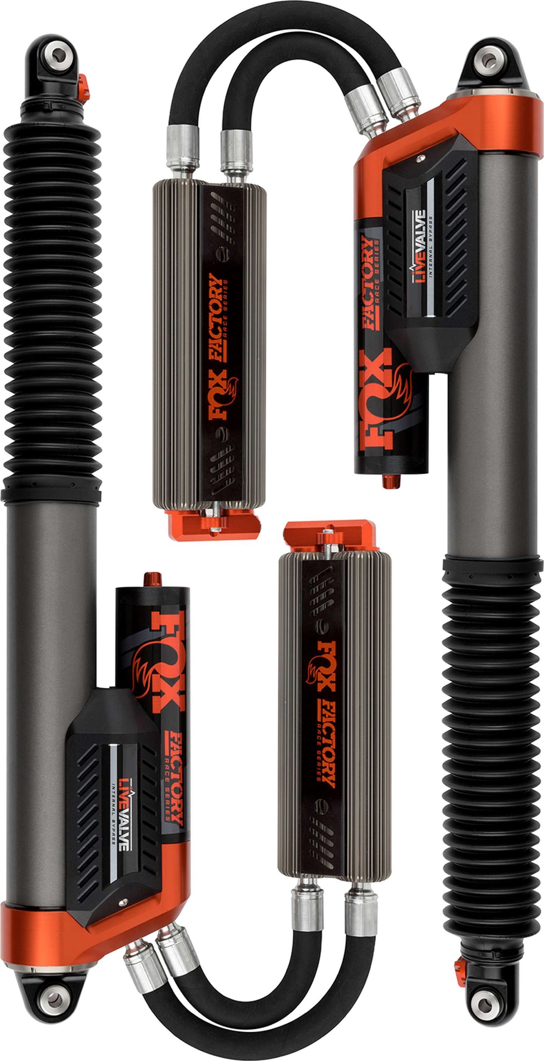 FOX Factory Race Series 3.0 Internal Bypass shocks for the 14th generation Ford F-150 deliver position-sensitive damping technology, Dual Speed Compression (DSC) adjustment, and high-speed ready performance in a bolt-on kit.Patented Internal Bypass technology allows for multiple zones of damping control. The result is a comfortable, confident ride with increased damping force through rough terrain. Internal bypass shocks produce more force progressively to control hard bottom-outs, prevent harsh top-outs, and provide an initial catch for landing. Shock fluid bypasses the main piston through a series of bleed holes in the ride zone. As the shock extends past the ride zone in rebound or compression, the bleed holes terminate, forcing fluid through the main piston.he Factory Race Series shocks also stay cool by utilizing a Recirculating Reservoir Bridge. The bridge circulates shock fluid between the finned external reservoir and body using checked ports. Type III anodization prevents corrosion and wear of the 3-inch diameter aluminum bodies. The DSC adjuster allows you to dial in your F-150 for load, environment, and driving style. FOX Internal Bypass shocks deliver the support and confidence you need while driving Mach-3 through rugged terrain. Experience race-bred performance next time you leave the pavement.