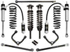 This system features upper control arms with ICON's patented Delta Joint. The Delta Joint is a heavy-duty high angle ball joint that combines the durability of a ball joint with the performance characteristics of a traditional uniball. While the industry standard uniball does a great job of allowing the control arms of a vehicle to articulate with little bind, they do have an inherent weakness that leaves more to be desired when used in a daily driven application - exposure to the elements. The Delta Joint features a zinc plated housing providing the first layer of corrosion resistance, while a tough grease seal keeps potentially harmful elements out of the inner workings of the joint. Metal on metal construction and a greaseable design increase the longevity of the Delta Joint while at the same time allowing for noise-free operation. What makes the Delta Joint unique is that it brings the best of both worlds to ICON upper control arms with features that make it more robust than a uniball, and at the same time capable of greater angularity than a typical ball joint.