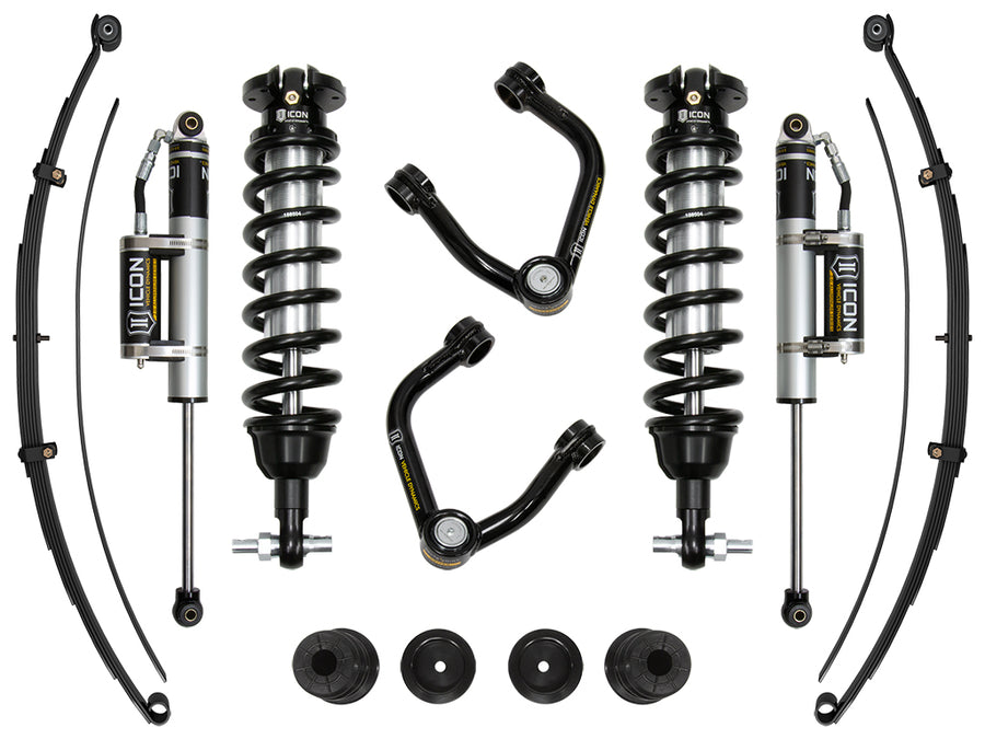 ICON Vehicle Dynamics 2019-UP Ford Ranger suspension systems are designed to dramatically increase the on and off-road ride quality. ICON engineers' primary focus is to increase wheel travel and damping ability, which translates into outstanding vehicle control and ride quality both on and off-road. With wheel travel and ride quality in mind, ICON engineers researched each component of the new Ranger platform's suspension and addressed any areas where performance could be extracted. The Stage 6 (Tubular) system includes vehicle-specific tuned 2.5 Series coilover shocks featuring an internal reservoir for exceptional cooling properties and ICON-engineered coil springs for superior vehicle “feel" through the range of travel. These coilovers are also height adjustable from 0-3.5" allowing the use of larger, more aggressive wheel and tire combinations. ICON 2.0 Aluminum Series remote reservoir rear shocks utilize a vehicle-specific valving that balances the performance of the truck from front to rear while the included foam bump stop kit increases rear end compliance. To improve the front-to-rear balance and increase the compliance of the truck, the rear spring rate of the included Multi Rate Leaf Packs has been lowered significantly compared to the OE spring. While many Ranger owners will embrace this, there are those who have outfitted their trucks with a significant amount of weight in the form of a bed rack, roof top tent, spare tires, parts, or other additions. Taking this into consideration, the Multi Rate Leaf Pack was designed with an additional leaf (included with kit) that can be exchanged or added to the pack yielding additional spring rate that will handle more "outfitted" vehicles. The ICON Vehicle Dynamics 2019-UP Ford Ranger Stage 6 suspension system is an excellent choice for those drivers looking to enhance the capabilities of their pickup on the road as well as in the dirt.
