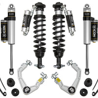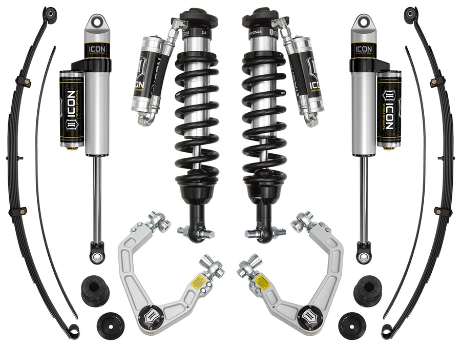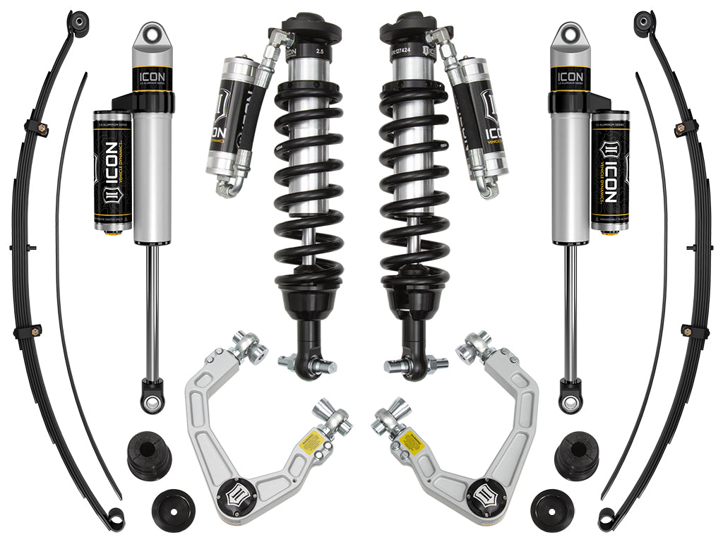 ICON Vehicle Dynamics 2019-UP Ford Ranger suspension systems are designed to dramatically increase the on and off-road ride quality. ICON engineers' primary focus is to increase wheel travel and damping ability, which translates into outstanding vehicle control and ride quality both on and off-road. With wheel travel and ride quality in mind, ICON engineers researched each component of the new Ranger platform's suspension and addressed any areas where performance could be extracted. The Stage 7 (Billet) system includes vehicle-specific tuned 2.5 Series coilover shocks featuring remote reservoirs for exceptional cooling properties and ICON-engineered coil springs for superior vehicle “feel" through the range of travel. These coilovers are also height adjustable from 0-3.5" allowing the use of larger, more aggressive wheel and tire combinations. ICON 2.5 Series piggyback reservoir rear shocks utilize a vehicle-specific valving that balances the performance of the truck from front to rear while the included foam bump stop kit increases rear end compliance. To improve the front-to-rear balance and increase the compliance of the truck, the rear spring rate of the included Multi Rate Leaf Packs has been lowered significantly compared to the OE spring. While many Ranger owners will embrace this, there are those who have outfitted their trucks with a significant amount of weight in the form of a bed rack, roof top tent, spare tires, parts, or other additions. Taking this into consideration, the Multi Rate Leaf Pack was designed with an additional leaf (included with kit) that can be exchanged or added to the pack yielding additional spring rate that will handle more "outfitted" vehicles. The ICON Vehicle Dynamics 2019-UP Ford Ranger Stage 7 suspension system is an excellent choice for those drivers looking to enhance the capabilities of their pickup on the road as well as in the dirt.