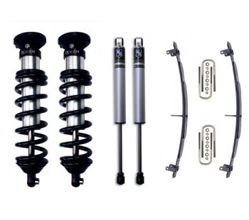 ICON Vehicle Dynamics Toyota Tundra Stage 2 suspension systems are designed with maximum performance and the serious driver in mind. ICON engineers'imary focus is to increase wheel travel and damping ability, which translates into outstanding vehicle control and ride quality both on and off-road. The Stage 2 system includes vehicle-specific tuned 2.5" coilover shocks featuring an internal reservoir for exceptional cooling properties. These coilovers are also height adjustable from 0-2.5" of lift allowing the use of larger, more aggressive wheel and tire combinations. ICON 2.0 VS Aluminum Series monotube rear shocks utilize a vehicle-specific valving that balances the performance of the truck from front to rear. The ICON Vehicle Dynamics 2000 - 2006 Toyota Tundra Stage 2 suspension system is an excellent choice for those drivers looking to enhance the capabilities of their pickup on the road as well as in the dirt.