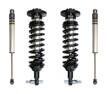 ICON Vehicle Dynamics 2007-2018 GM Silverado/Sierra 1500 suspension systems are designed to dramatically increase the on and off-road ride quality. ICON engineers'imary focus is to increase wheel travel and damping ability, which translates into outstanding vehicle control and ride quality both on and off-road. With wheel travel and ride quality in mind, ICON engineers researched each component of the GM platform'uspension and addressed any areas where performance could be extracted. The Stage 1 system includes vehicle-specific tuned 2.5 coilover shocks featuring an internal reservoir for exceptional cooling properties and ICON-engineered Eibach coil springs for superior vehicle "feel" through the range of travel. These coilovers are also height adjustable from 1-3" allowing the use of larger, more aggressive wheel and tire combinations. ICON 2.0 Aluminum Series monotube rear shocks utilize a vehicle-specific valving that balances the performance of the truck from front to rear. The ICON Vehicle Dynamics GM Silverado/Sierra 1500 Stage 1 suspension system is an excellent choice for those drivers looking to enhance the capabilities of their pickup on the road as well as in the dirt.