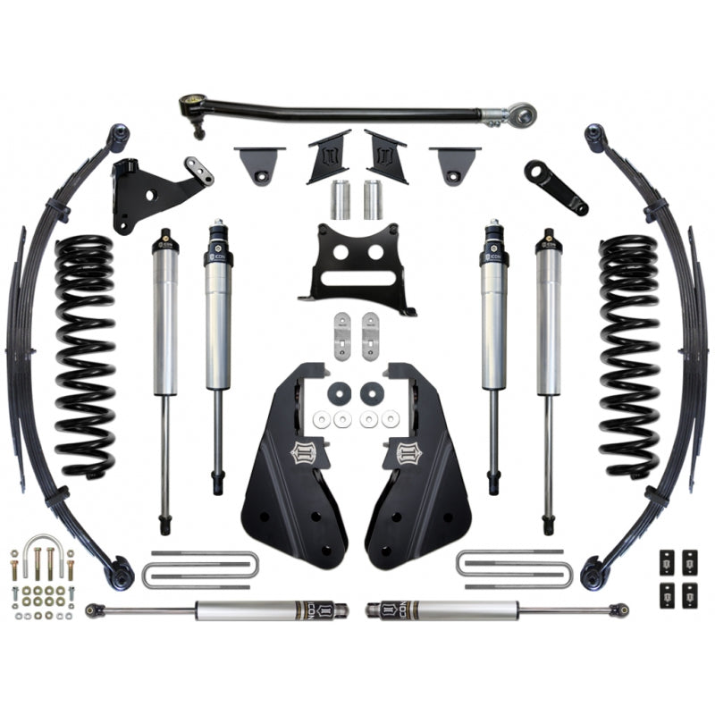 This ICON Vehicle Dynamics 7" suspension system is a great way to lift your 4WD 2017-UP Ford F250/350 Super Duty while drastically improving ride quality and performance. This suspension system is perfect for on-road and off-road use including towing, job site duty, and general off-road adventure. ICON's 7" Stage 2 System is comprised of dual rate coil springs, progressive leaf springs, radius arm drop brackets, adjustable track bar, dual opposing steering stabilizer kit, ICON 2.5 Series internal reservoir front and rear shocks, plus all of the necessary hardware for installation. With the endless hours ICON has spent testing and tuning our suspension components and shocks as a complete package, you can rest assured you have the best suspension solution on the market.