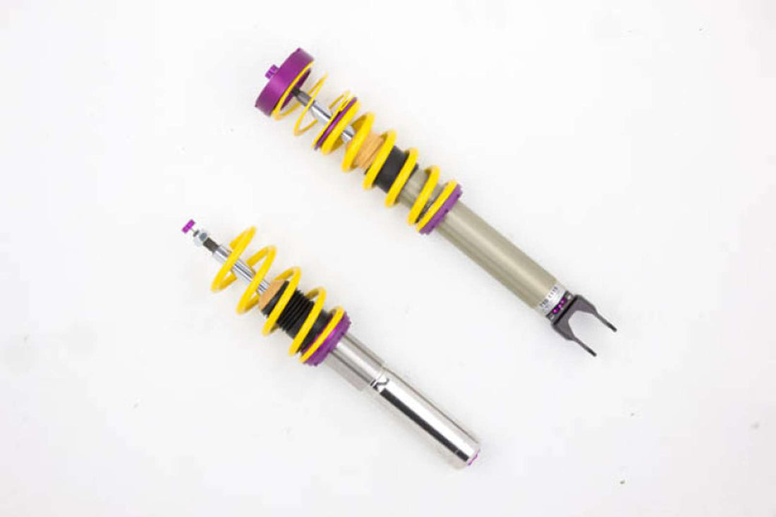 If you demand cutting-edge motorsports technology, tuned to bring you more performance in the real world on the road and on the track, there are few better choices than the KW Variant 3 line of coilovers. Featuring independently adjustable compression and rebound damping, the Variant 3 damper setup can be tuned to your own driving preferences or vehicle modifications such as weight, tire characteristics, or additional chassis bracing. The extensive adjustment range of the independently configurable rebound and compression makes it easy to directly influence the steering behavior, directional stability, grip, and handling characteristics for confident and repeatable results at the limit of driving dynamics. Furthermore, the dirt-resistant trapezoid threaded body and composite adjustment collar allow you to continuously adjust ride-height to perfectly tune your corner weights or curb appeal. Tested, tuned, and perfected on the historic Nurburgring Nordschleife, and backed by a Limited Lifetime Warranty, the KW V3 line of coilovers are more than just hype.