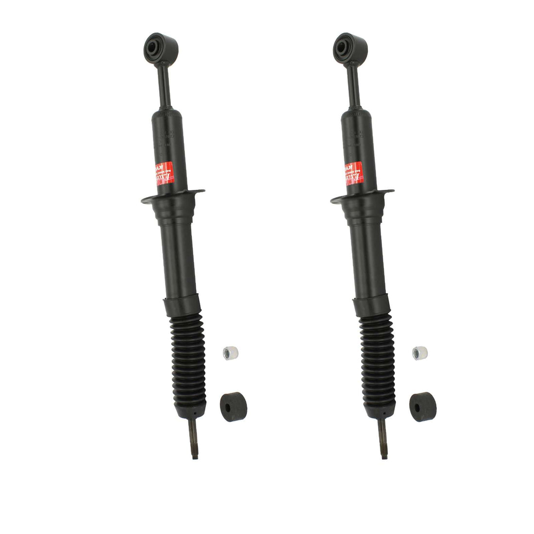 All necessary washers, bushings, and nuts included. Factory shock mounting bolts are reused for installation. Shock boots sold separately.