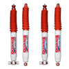 Skyjacker Hydro Shocks offers you a high quality shock absorber with true velocity sensitive valving. Shock absorbers, or spring dampers, control the rate at which suspension springs compress and rebound. As the shock is pushed together, this is called bump or compression. As the shock expands, this is called rebound or extension. Absorbing the shock of bumps and suspension loading is actually performed by the springs in the suspension. The shocks real job is controlling the energy stored in the springs.