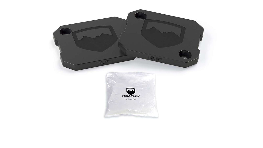 The TeraFlex JT: 0.5" Rear Lower Bump Stop Strike Pad Shim Kit extends the reach of the factory bump stops on lifted JT Gladiator models to soak up energy during hard compression and suspension movement. Combine with our JT: 1.5" Rear Upper Bump Stop Strike Pad Extension Kit(s) (# 1969300) and 0.5" Rear Upper Shim Kit(s) (# 1969400) to fine tune your strike pad height.