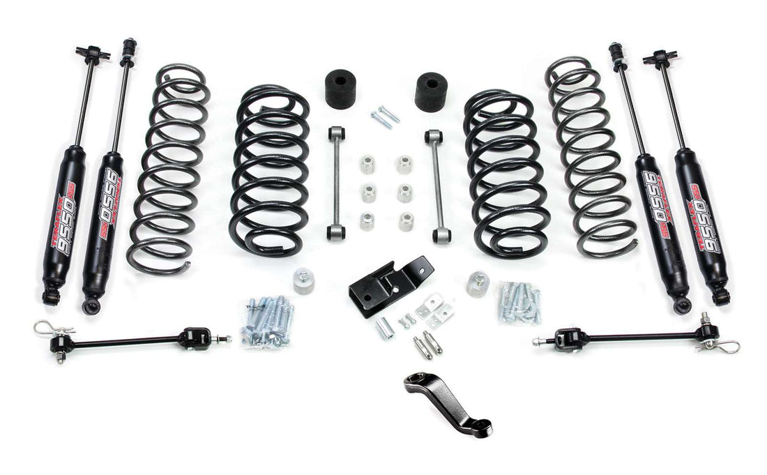 Coil Spring Base Lift Kits include just the basic lift components only and don–t have the drivability of a full suspension system. Requires adjustable control arms and/or adjustable front track bar to correct suspension geometry. We recommend Falcon Performance Shocks or TeraFlex 9550 VSS Twin-Tube Shocks. These are the only shock absorbers engineered to work with TeraFlex lift coil springs to improve both compression and rebound for optimal vehicle stability. Coil Spring Base Lift Kits are offered with TeraFlex 9550 VSS Twin-Tube Shocks or without shock absorbers.